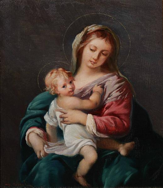 Raffigurazione devozionale della Madonna col Bambino, probabilmente derivato da un modello iconografico settecentesco d'ambito veneziano.