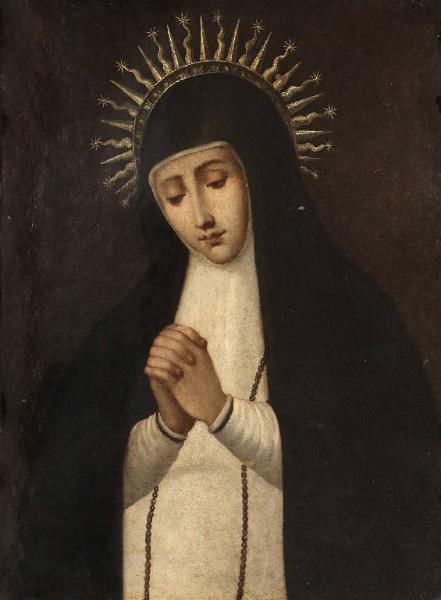 Il dipinto costituisce un'immagine devozionale di una santa, che potrebbe essere identificata con Caterina da Siena, ma di cui mancano gli attributi tradizionali. Essa è raffigurata a mezzo busto e in preghiera con l'abito delle terziarie domenicane.