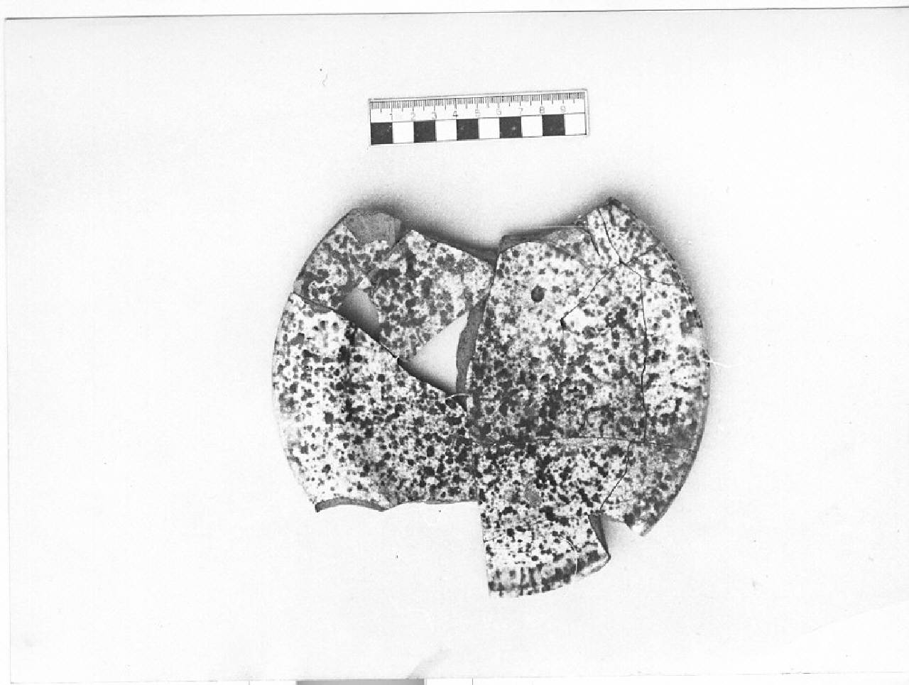 - NOTIZIE STORICO CRITICHE Proviene dagli scavi stratigrafici all'interno della Torre Civica di Pavia (1972-3) (cfr. H. Blake, Scavo nella Torre Civica di Pavia, 1972 in Archeologia Medievale, I, 1974). Il decoro risulta diffuso in area padana, particolarmente a Mantova.