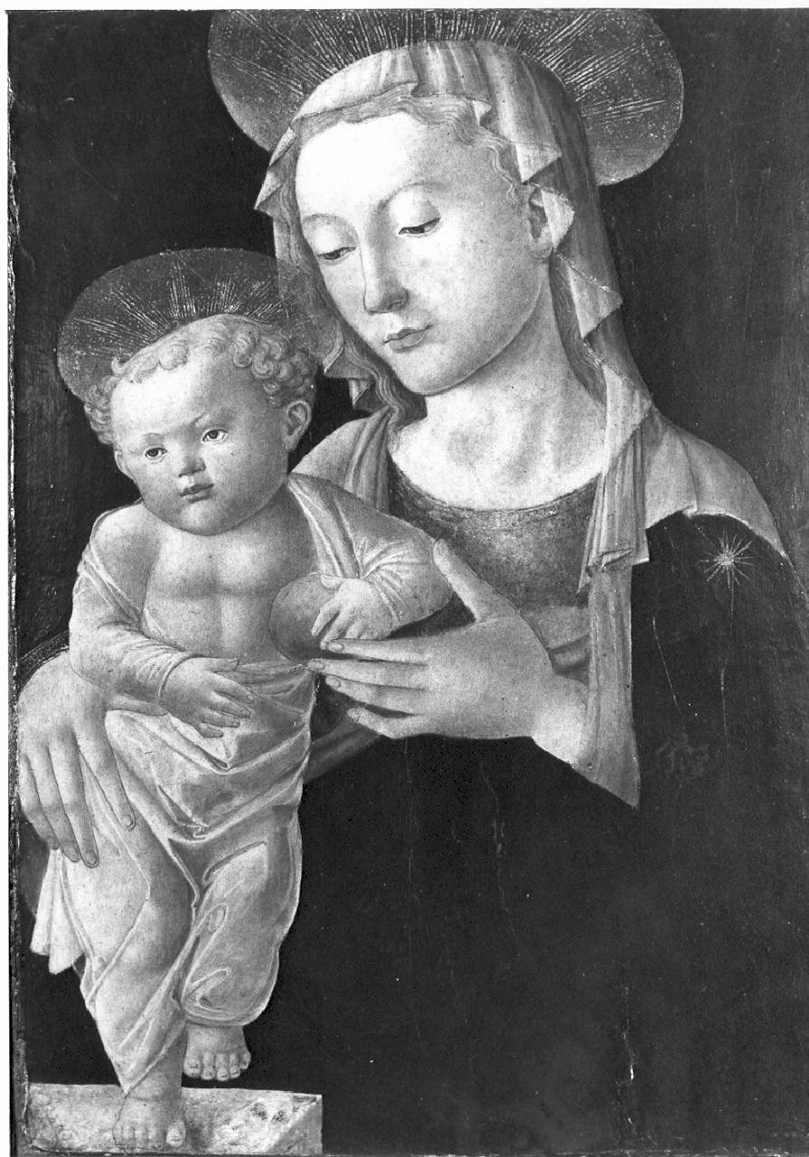 - NOTIZIE STORICO CRITICHE Nella scheda inventariale del museo si riporta l'attribuzione alla scuola di Fra Filippo Lippi, probabilmente per il confronto del Bambino con la Pala Barbadori al Louvre, ipotesi accettata dal Bicchi (cfr. U. Bicchi, La Pinacoteca Civica di Pavia, 1965, p. 49). Per Maiocchi era invece di scuola toscana, riferimento ancora valido.