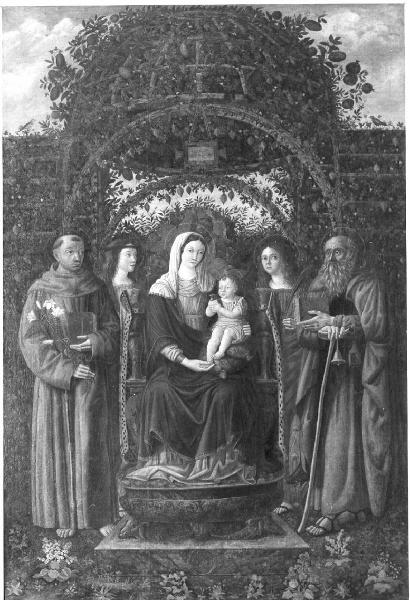 - NOTIZIE STORICO CRITICHE Riferibile forse ad Antonio da Pavia, mantegnesco attivo tra il 1481 e il 1528, figlio o nipote di un certo Michele, pittore pavese di corte dei Gonzaga, che divenne in seguito aiuto di Giulio Romano (cfr. Madonna e santi in Palazzo Ducale a Mantova).