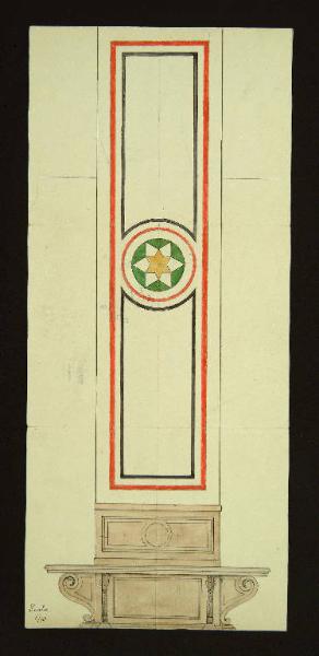 decorazione con motivi geometrici a stella per colonna . Schizzi di elementi archittetonici .a matita sul verso