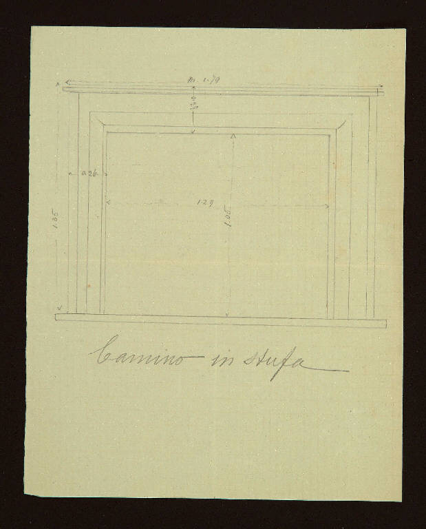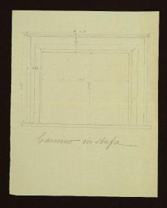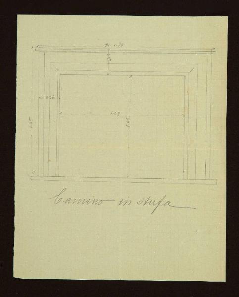 disegno architettonico per camino in stufa della Camera del Letto Valtellinese con indicazioni di misure