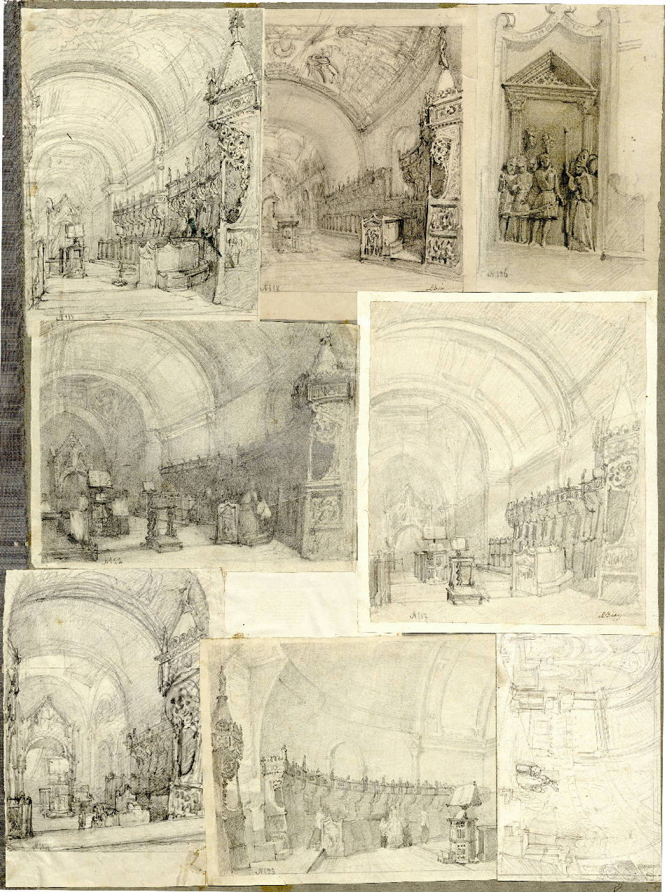 Studi relativi a Sant'Ambrogio. Bassorilievi degli Stalli del Coro.. Studi relativi a Sant'Ambrogio. Bassorilievi degli Stalli del Coro.