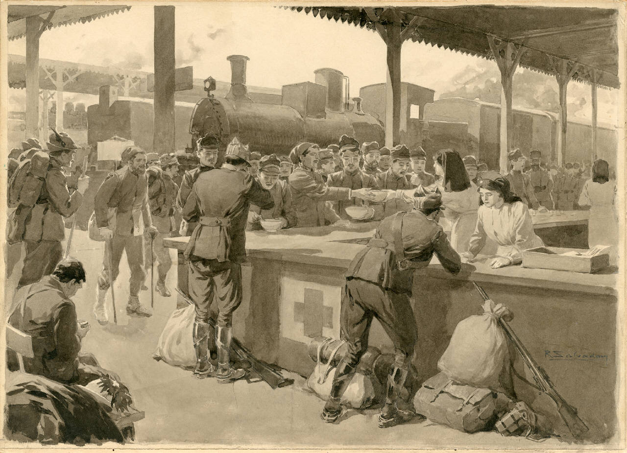 Posto di ristoro pei soldati alla Stazione Centrale