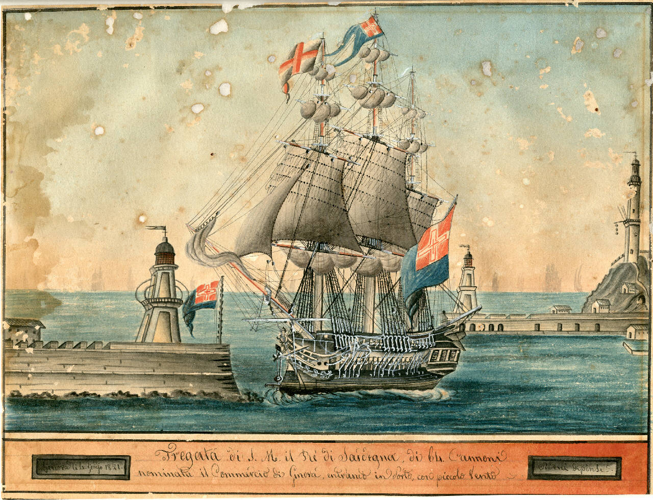 Fregata di S. M. il Re di Sardegna, di 64 Cannoni nominata il Commercio di Genova, entrando in porto, con piccolo vento