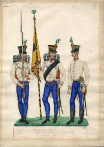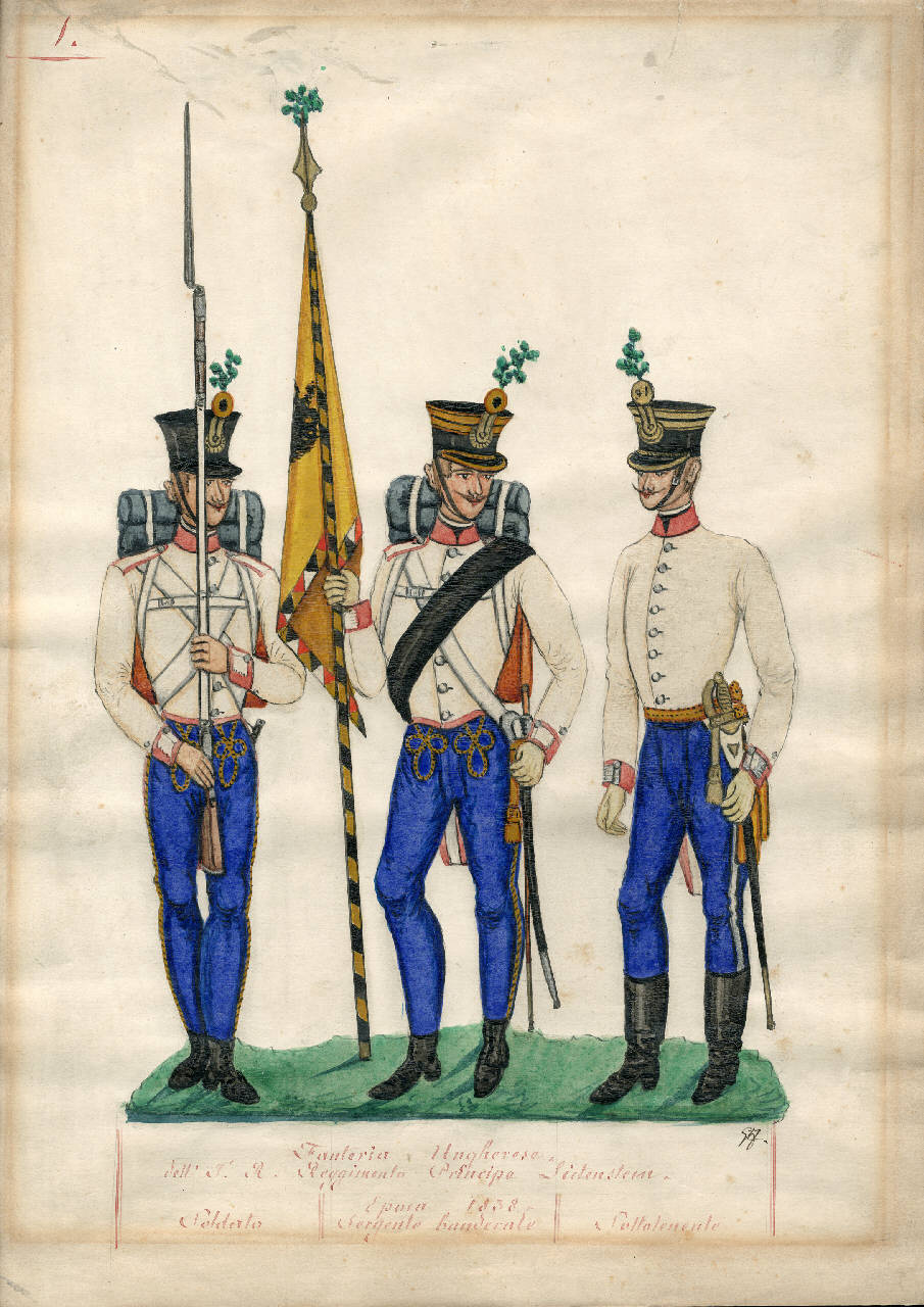 Fanteria Ungherese dell'Ie. R. Reggimento Principe Lichtenstein. Epoca 1838. Soldato, Sergente banderale, Sottotenente