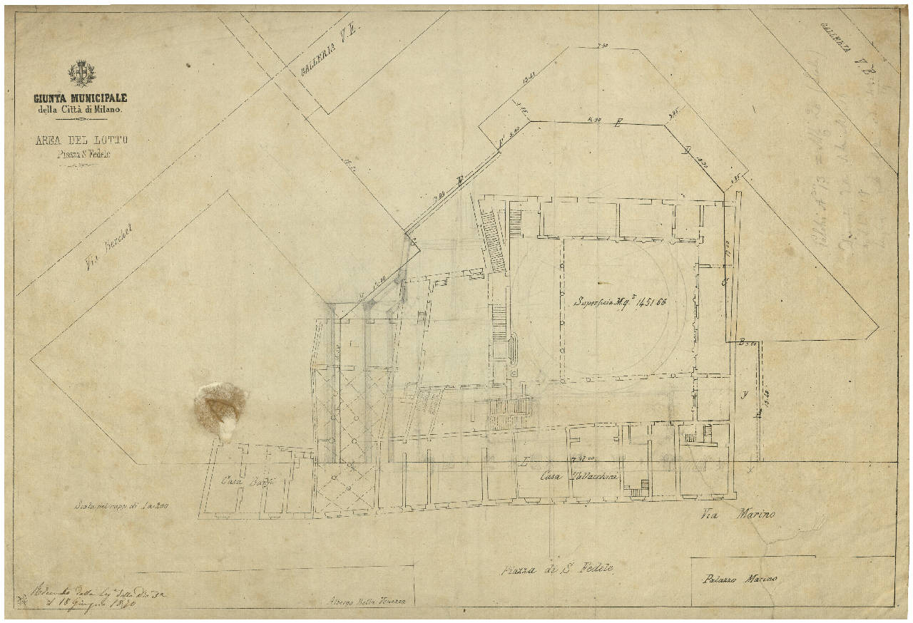 Progetto del teatro sulla piazza S. Fedele. Area del lotto. Progetto del teatro sulla piazza S. Fedele. Area del lotto