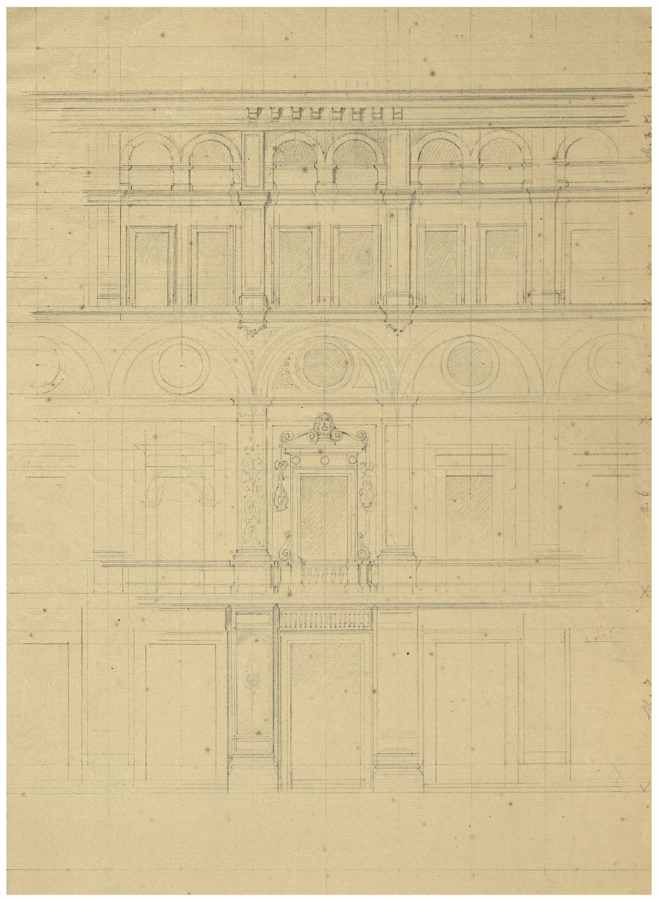 Particolare della facciata del teatro da erigersi in piazza San Fedele. Particolare della facciata del teatro da erigersi in piazza San Fedele