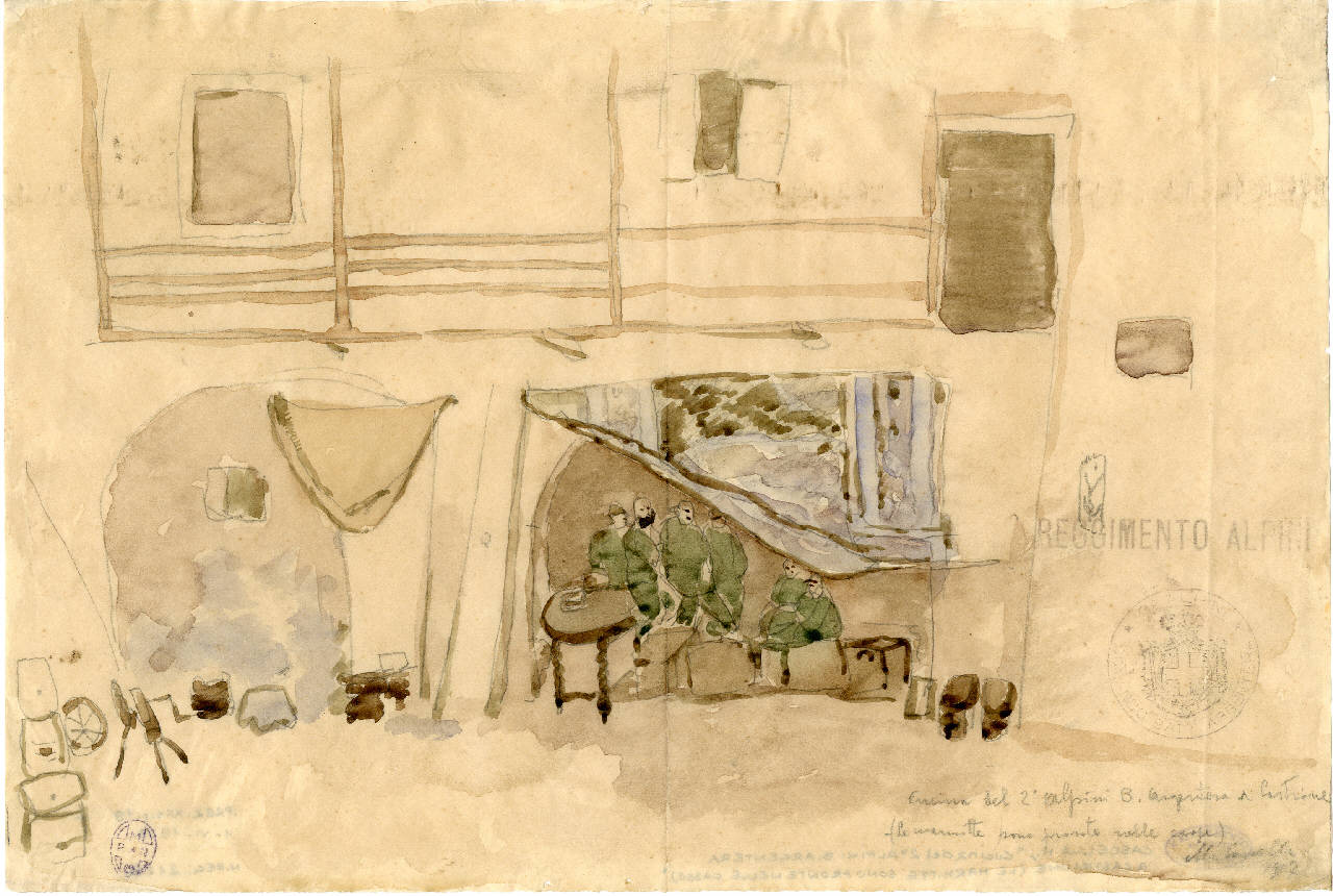 Cucina 2° alpini B. Argentera a Castione (le marmitte sono pronte nelle casse)