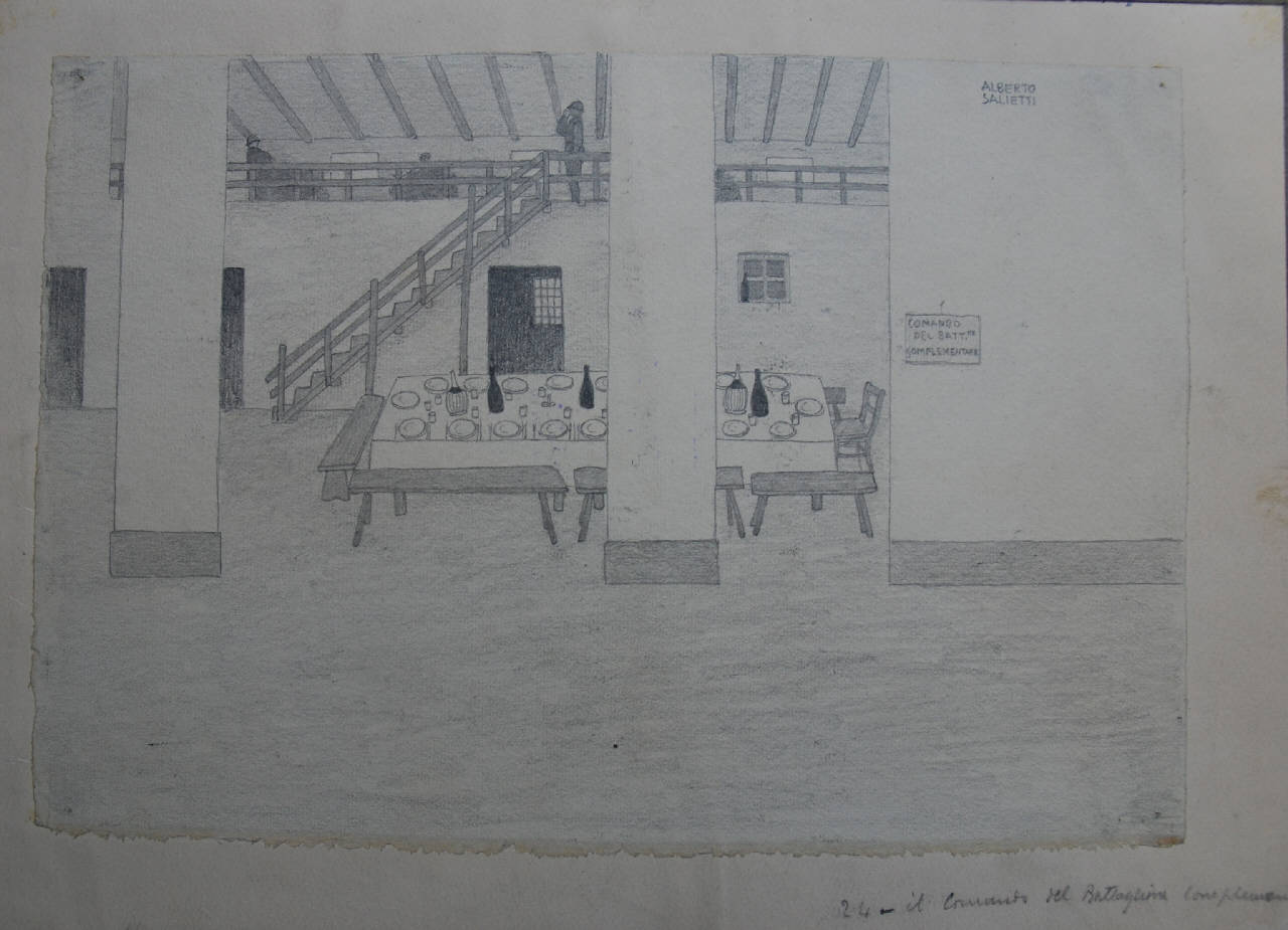 - NOTIZIE STORICO CRITICHE Tavola 24 di una serie eseguita sul fronte dall'artista. Il foglio era in origine conservato nella Cartella 35 del Archivio di Storia Contemporanea già Archivio della Guerra.