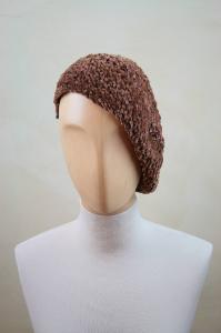 Basco con cupola rotonda in ciniglia nocciola lavorata ad uncinetto.