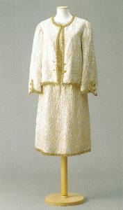 - NOTIZIE STORICO CRITICHE Silvana Bernasconi ricorda che l'abito è stato realizzato dalla sartoria Rina Modelli di Milano, specializzata nella vendita e nella realizzazione di modelli francesi. Un completo identico, ma con doppia etichetta "Chanel" e "22.155" è stato venduto a un'asta di Doyle New York il 16 novembre 2004 (lotto n. 3483; cfr. Doyle New York 2004, pp. 31, 33)