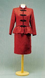 - NOTIZIE STORICO CRITICHE Il tailleur (tg. 40) della collezione prêt-à-porter è riconducibile alla collezione haute couture di Saint Laurent per l'inverno 1979-80 in cui presenta molti capi chiusi con alamri (cfr. catalogo della mostra al The Metropolitan Museum of Art, Yves Saint Laurent, 1983).