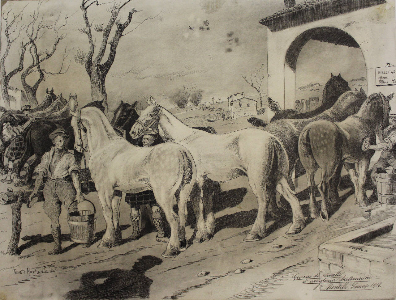Governo di cavalli d'artiglieria britannica. Montello, Gennaio 1918.. prima guerra mondiale