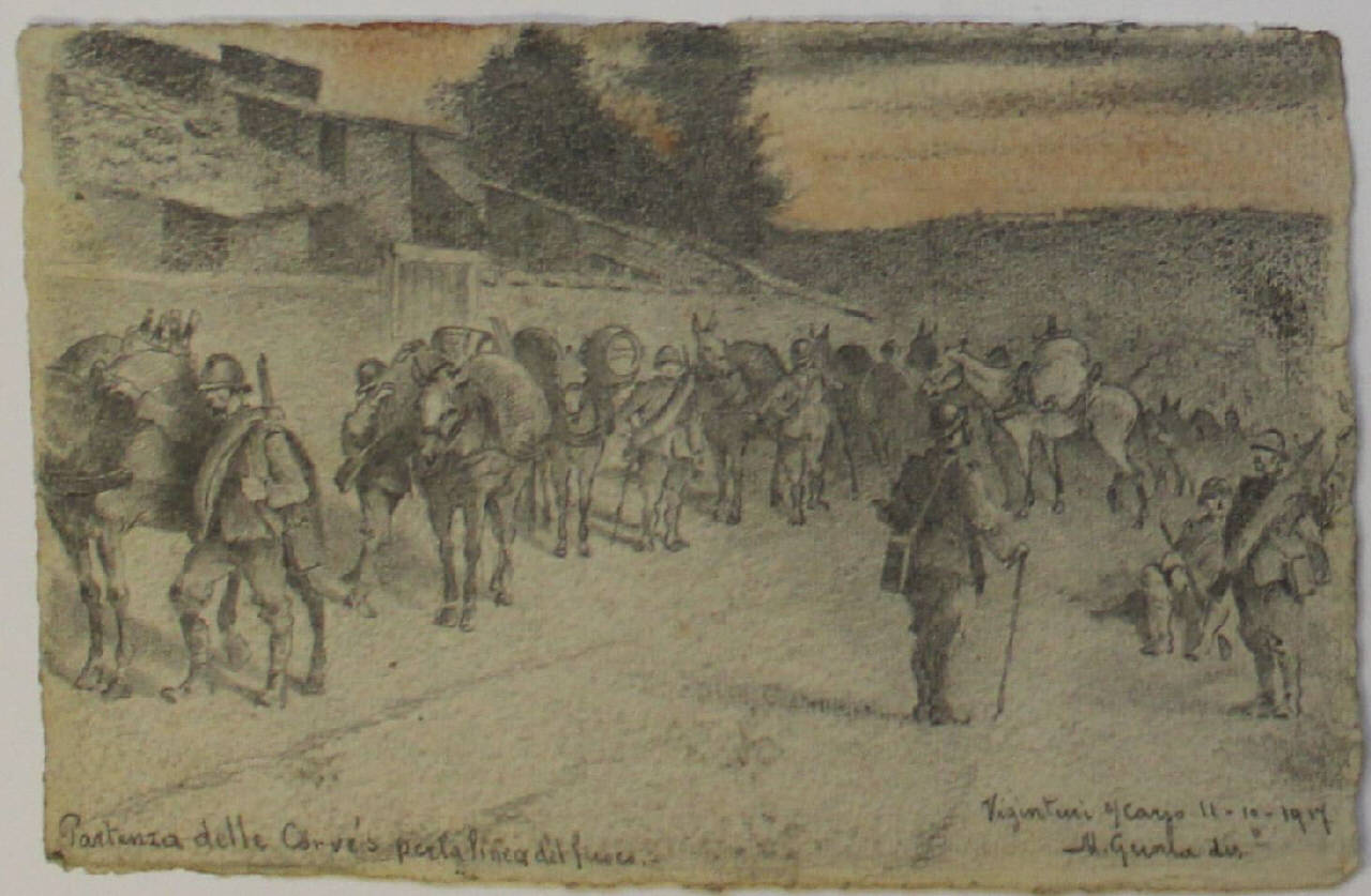 Partenza delle Corvés per la linea del fuoco. -. prima guerra mondiale