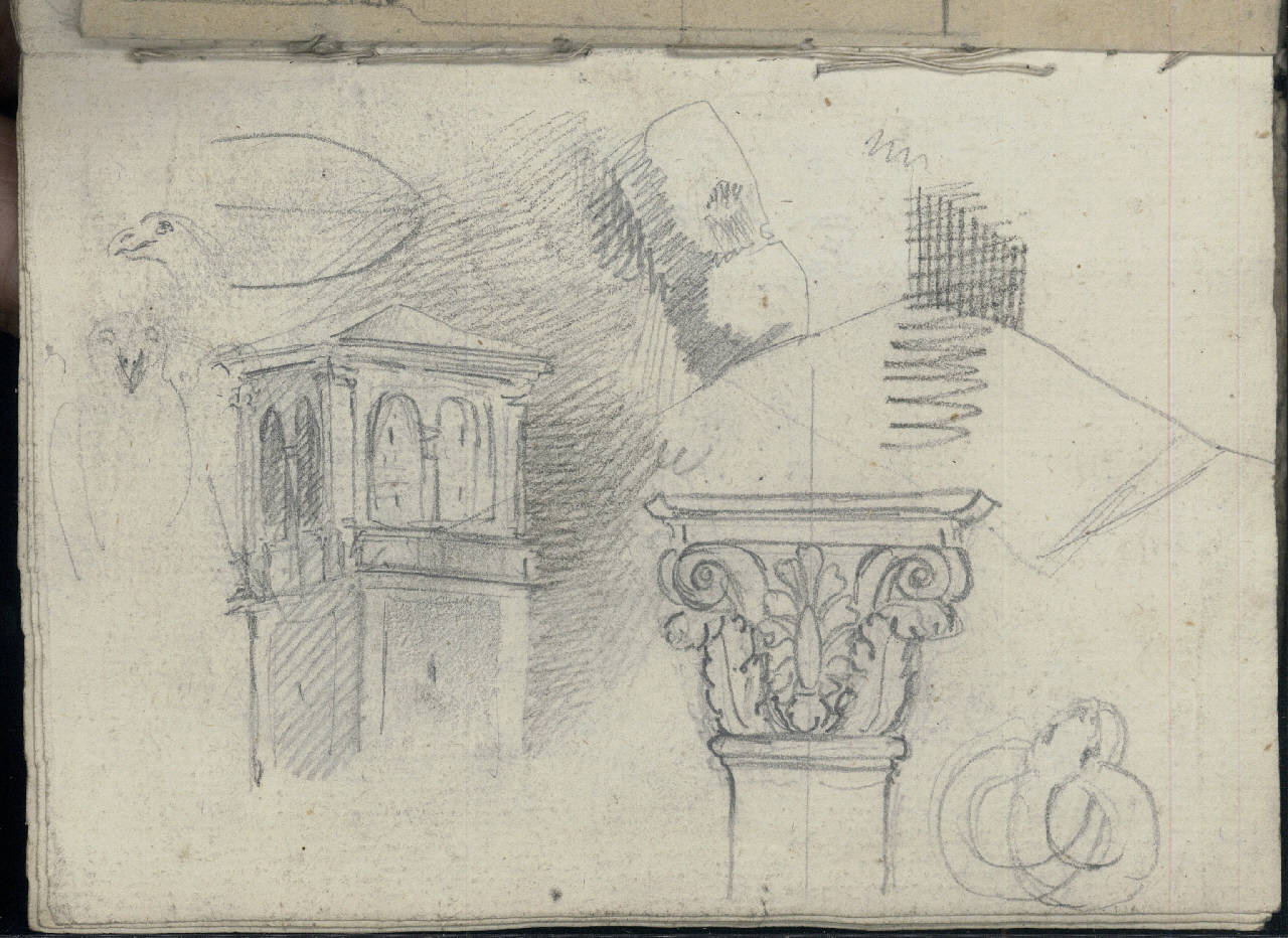 studio di capitello, campanile e uccello. studio di capitello, campanile e uccello