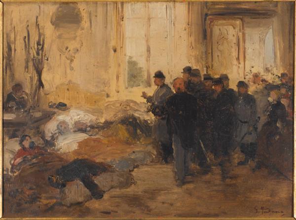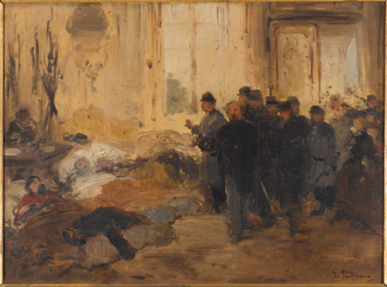 Giuseppe Garibaldi visita i feriti in casa Litta a Biumo Inferiore. Giuseppe Garibaldi visita i feriti in casa Litta a Biumo Inferiore