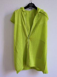 Giacca mezza manica verde acido con chiusura zip e cappuccio.