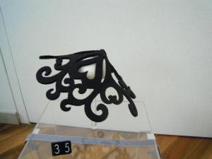 Copricapo a cono in feltro, tagliato con motivi fitomorfi.