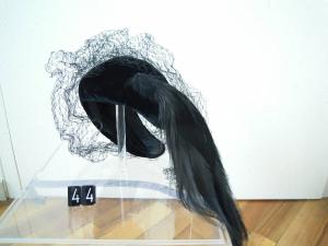Cerchietto imbottito di velluto nero con piume e veletta (staccata).