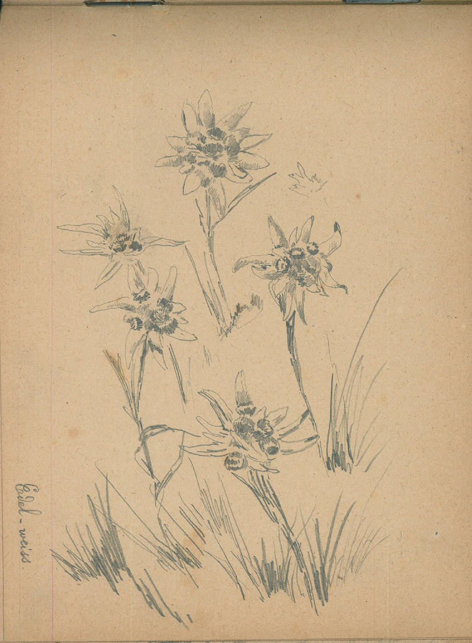 - NOTIZIE STORICO CRITICHE Serie di disegni conservati all'interno di un taccuino da viaggio datato 1892 e posseduto dall'artista Camillo Ghisi.\nRaffigurazione di cinque stelle alpine (Edel-weiss)