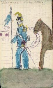 - NOTIZIE STORICO CRITICHE Serie di disegni conservati all'interno di un taccuino posseduto dall'artista Camillo Ghisi.\nSchizzo a china raffigurante un soldato in vesti militari ed il suo cavallo.