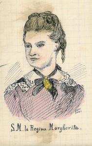 - NOTIZIE STORICO CRITICHE Serie di disegni conservati all'interno di un taccuino posseduto dall'artista Camillo Ghisi.\nSchizzo a china e tempera raffigurante la Regina Margherita firmato Luigi Ghisi