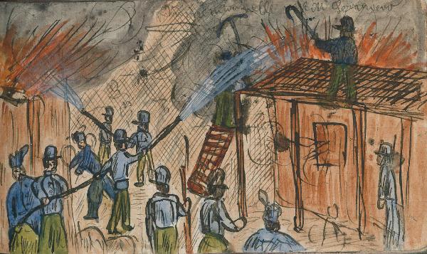 - NOTIZIE STORICO CRITICHE Serie di disegni conservati all'interno di un taccuino posseduto dall'artista Camillo Ghisi.\nScena raffigurante lo spegnimento di un incendio.