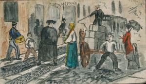 - NOTIZIE STORICO CRITICHE Serie di disegni conservati all'interno di un taccuino posseduto dall'artista Camillo Ghisi.\nScena di vita quotidiana di fine '800.