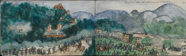 - NOTIZIE STORICO CRITICHE Serie di disegni conservati all'interno di un taccuino posseduto dall'artista Camillo Ghisi.\nLa scena raffigura la posizione dell'esercito italiano al M. del Monte a Varese.