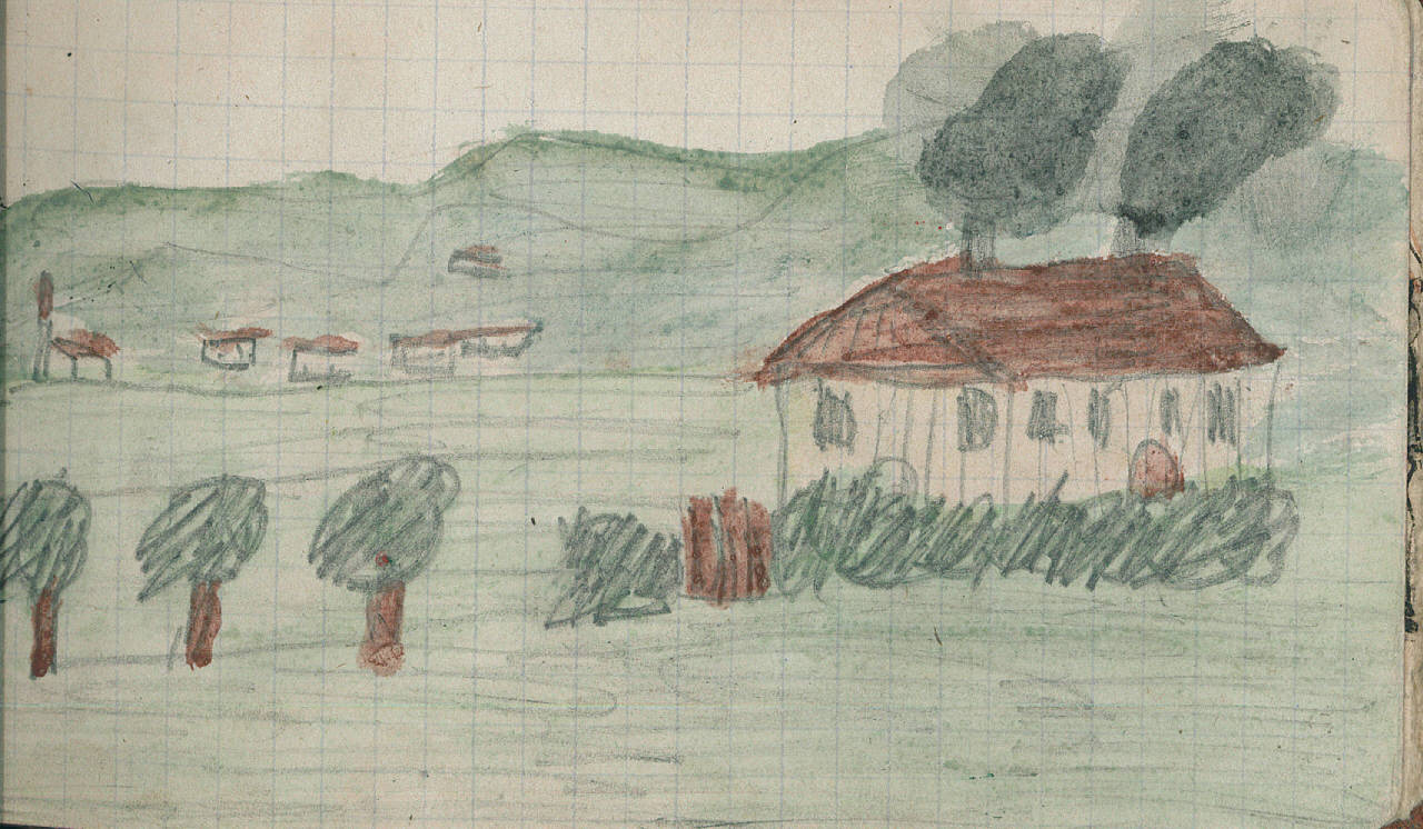 - NOTIZIE STORICO CRITICHE Serie di disegni conservati all'interno di un taccuino posseduto dall'artista Camillo Ghishi.\nLa scena raffigura il un paesaggio di campagna con una piccola abitazione.