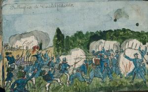 - NOTIZIE STORICO CRITICHE Serie di disegni conservati all'interno di un taccuino posseduto dall'artista Camillo Ghishi.\nLa scena raffigura la Battaglia di Castelfidardo.