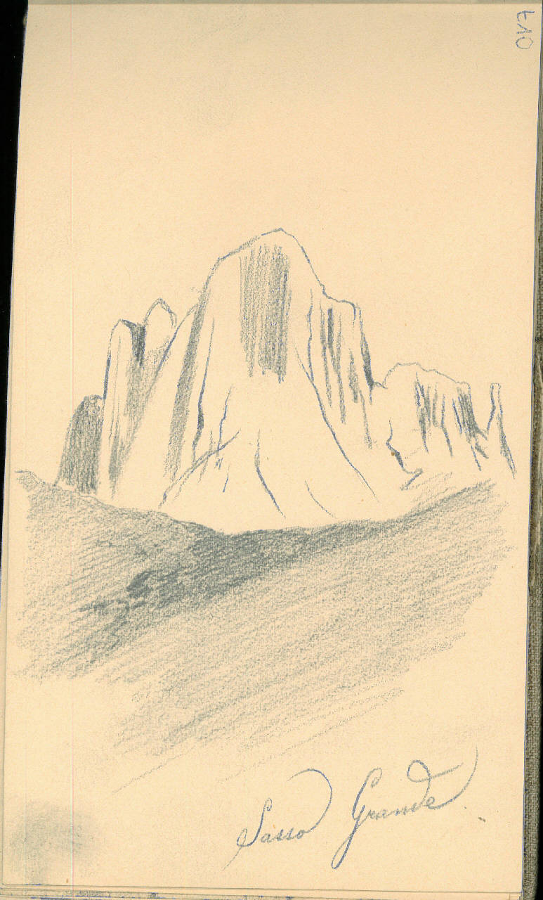- NOTIZIE STORICO CRITICHE Serie di disegni conservati all'interno di un taccuino posseduto dall'artista Camillo Ghisi. \nIl soggetto raffigura il Sasso Grande, in Val Grande nella Provincia del Verbano-Cusio-Ossola.\nIl taccuino viene indicato nel registro di carico al n° 34305