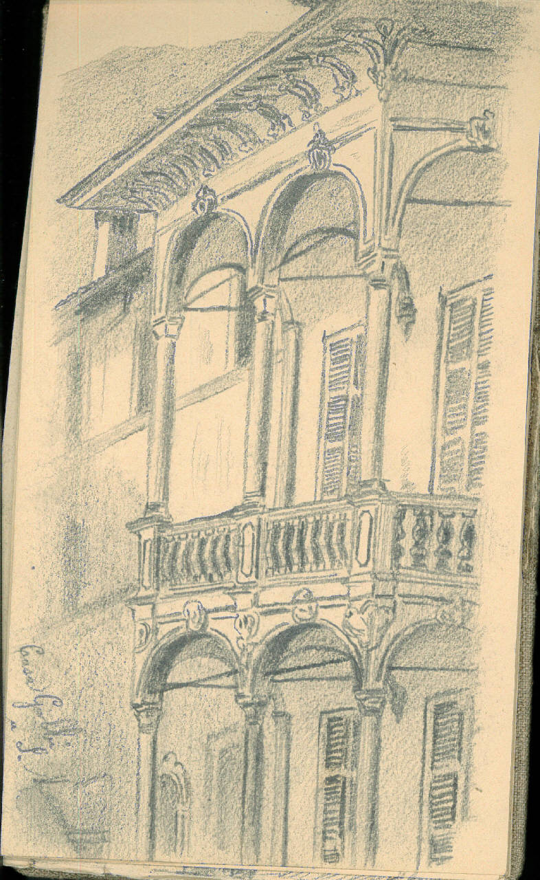 - NOTIZIE STORICO CRITICHE Serie di disegni conservati all'interno di un taccuino posseduto dall'artista Camillo Ghisi. \nIl soggetto raffigura la facciata di casa Giobbi a S. Memette.\nIl taccuino viene indicato nel registro di carico al n° 34305