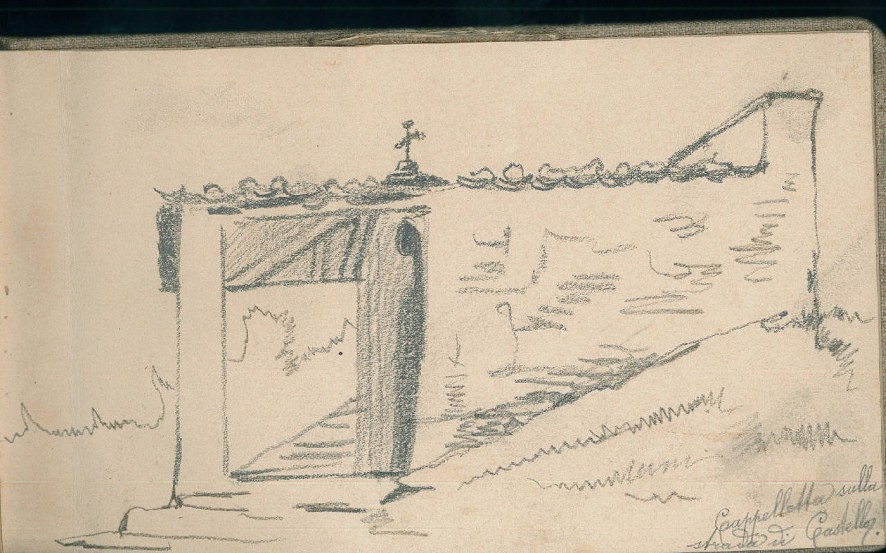 - NOTIZIE STORICO CRITICHE Serie di disegni conservati all'interno di un taccuino posseduto dall'artista Camillo Ghisi. \nIl soggetto raffigura la Cappelletta sulla strada di Castello.\nIl taccuino viene indicato nel registro di carico al n° 34305
