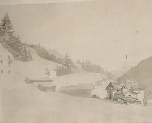 Vicinanze di Landeck. paesaggio con architetture