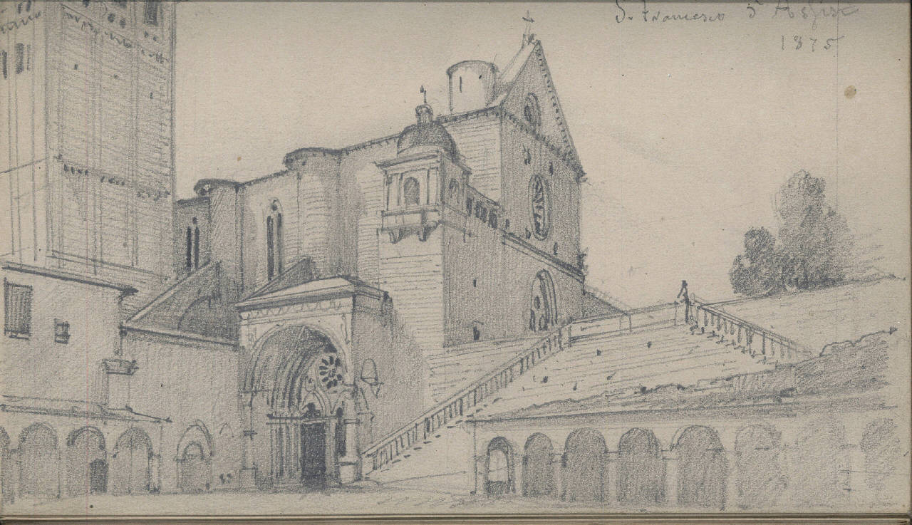 S. Francesco. Assisi1875. veduta prospettica di una chiesa
