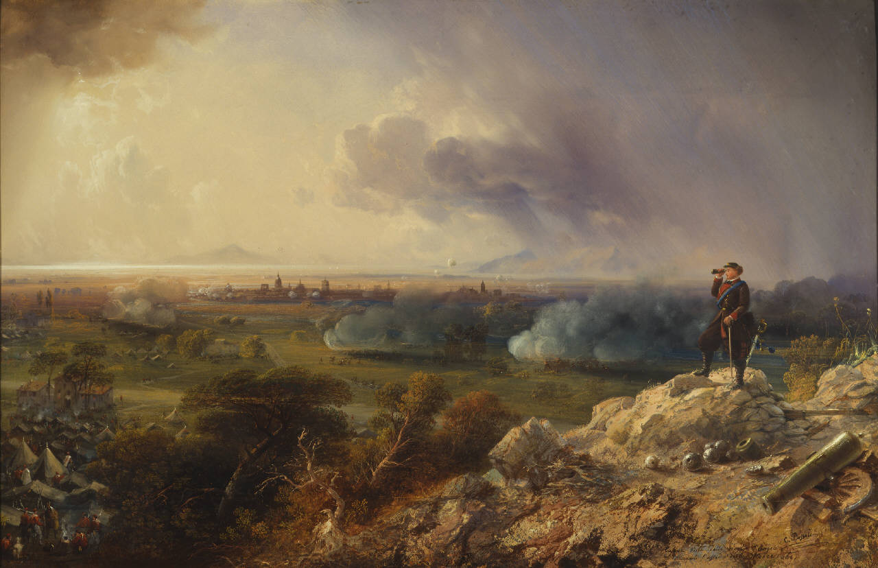 - NOTIZIE STORICO CRITICHE Episodio storico-narrativo: figure in piccola scala, immerse nella veduta di paesaggio. Assedio della piazzaforte borbonica, uno degli ultimi baluardi dell'esercito di Francesco II re delle Due Sicilie. A destra, Gian Martino Arconati Visconti, ufficialie dei bersaglieri.