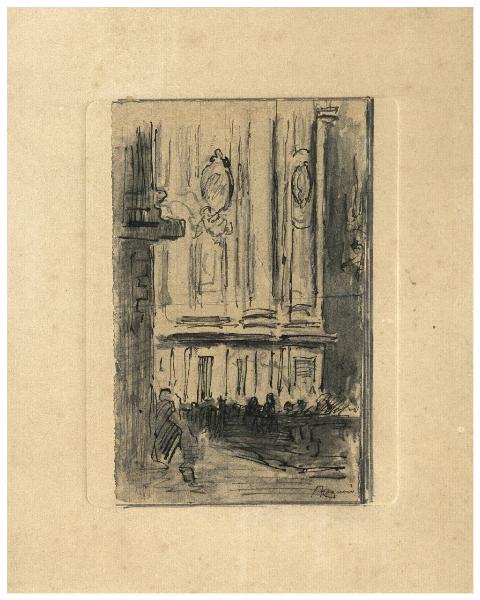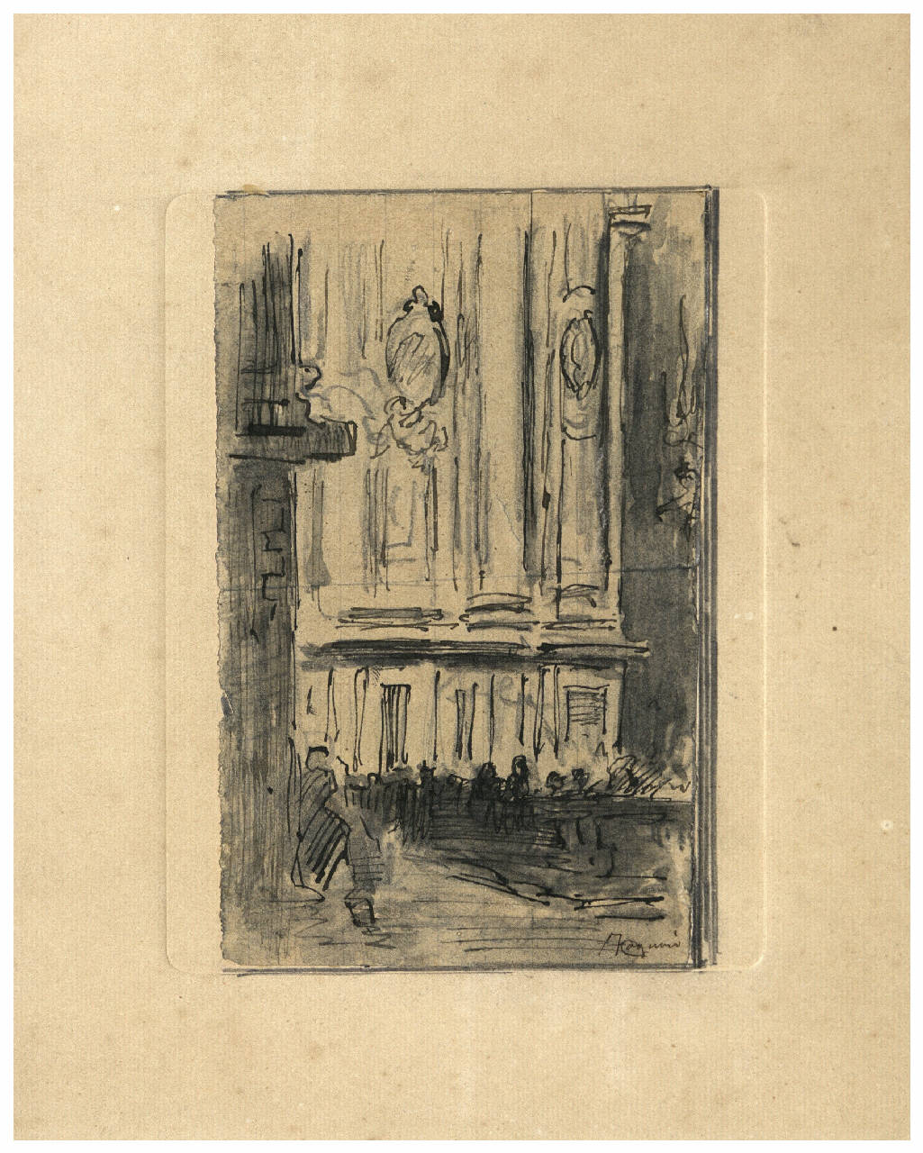 Disegno realizzato a penna ad inchiostro con la raffigurazione dell'interno della chisa di Sant'Alessandro.