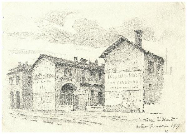 Disegno a matita raffigurante l' Osteria di Beritt\nIl disegno si trova all'interno di un album contenente una raccolta di disegni di Arturo Ferrari.