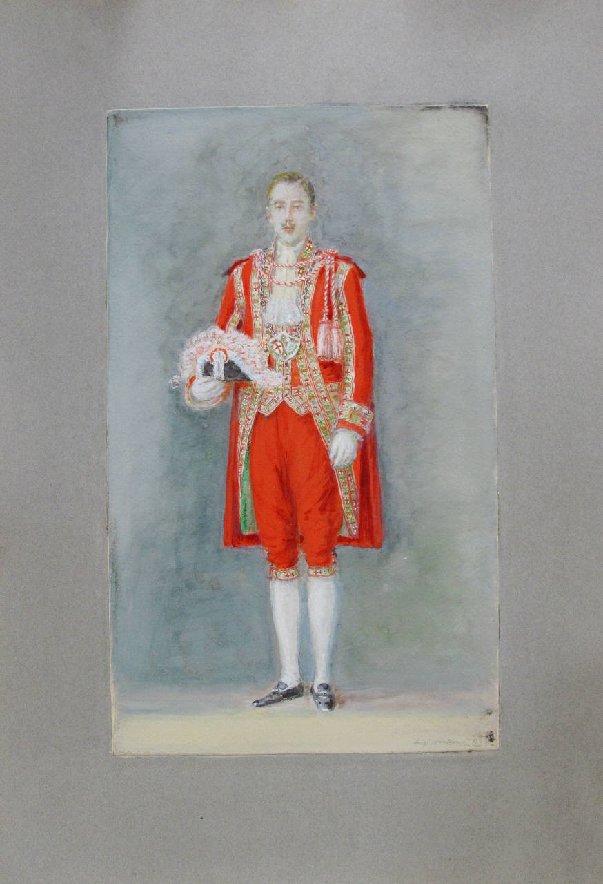 L'acquarello raffigura un valletto con uniforme rossa.