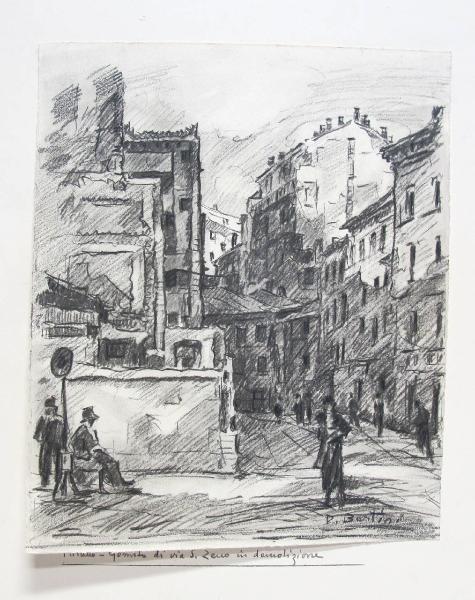 Disegno a carbonccino su carta raffigurante le demolizioni in via San Zeno