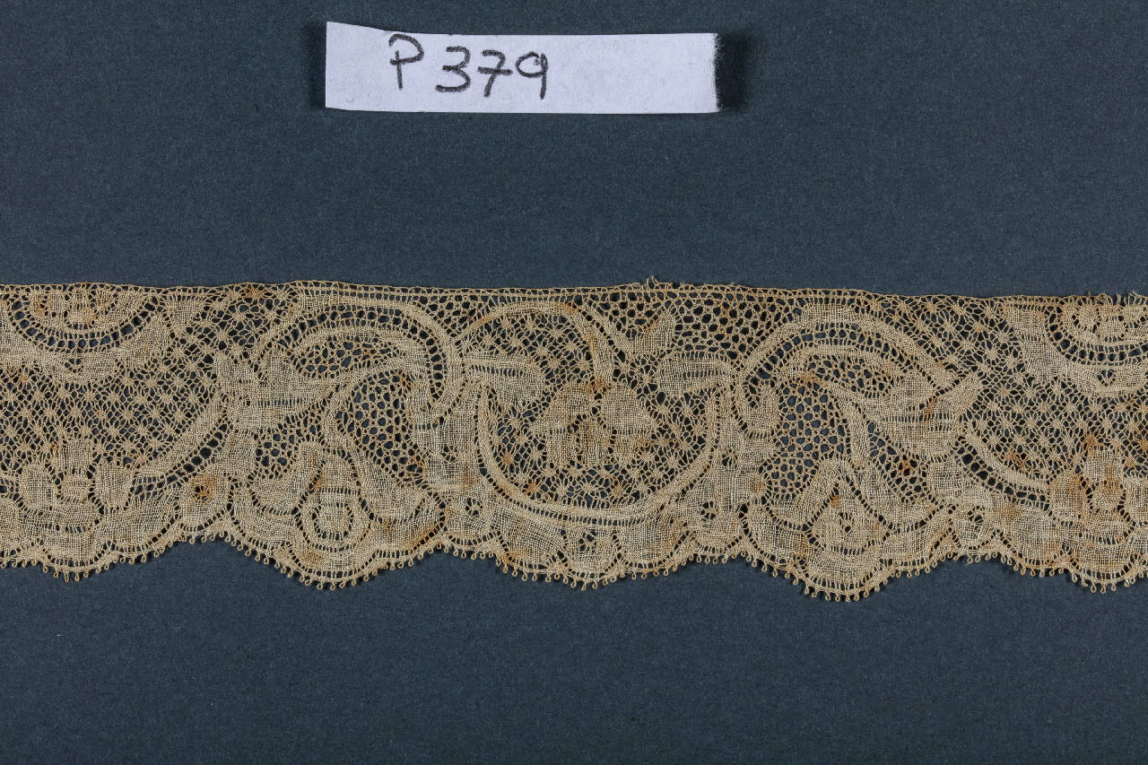 Bordo a fuselli tipo Valenciennes, decoro floreale. cm 4,1 x 50,5.