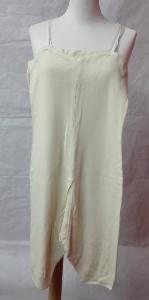 Combinazione femminile in maglina di lana sostenuta da spalline in raso di seta, gambe a mezza lunghezza; chiusura al cavallo con due bottoni.\npiccola guarnizione a punto catenella lungo lo scollo.