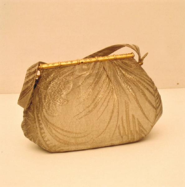 Borsetta tessuto lamé argento e oro, Ditta Bianchini-Férier, cerniera Ditta Boglino Parigi (per aprire spingere il cannotto verso destra)
