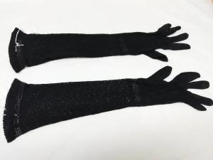 Guanti femminili in maglia di seta nera lunghi 46 cm.