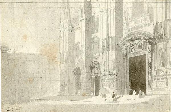 Veduta parziale della fronte del Duomo. Veduta parziale della fronte del Duomo