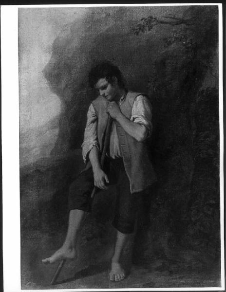 CONTADINO IN PIEDI APPOGGIATO AD UN BASTONE