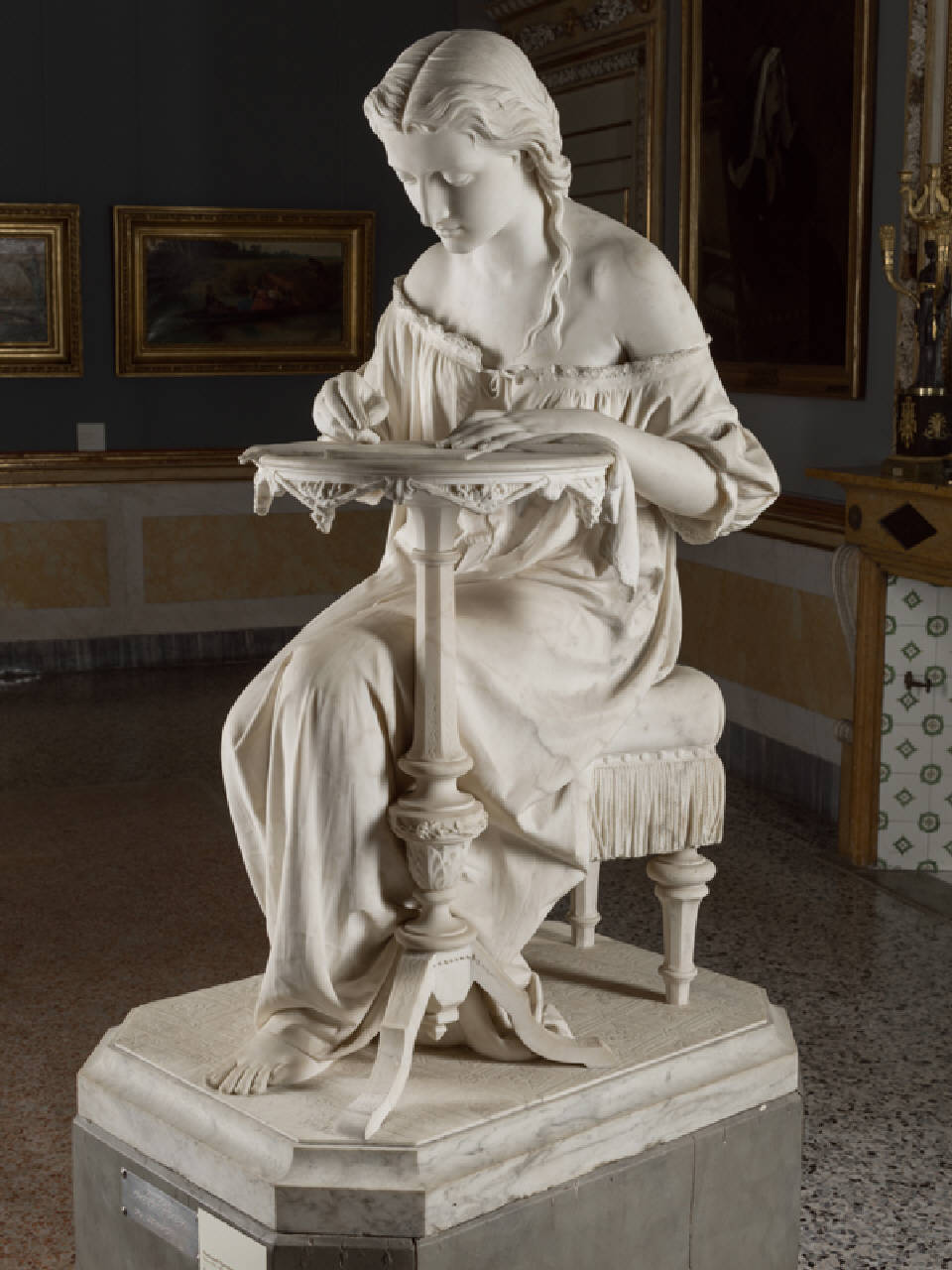 Fanciulla intenta a scrivere. fanciulla che scrive
